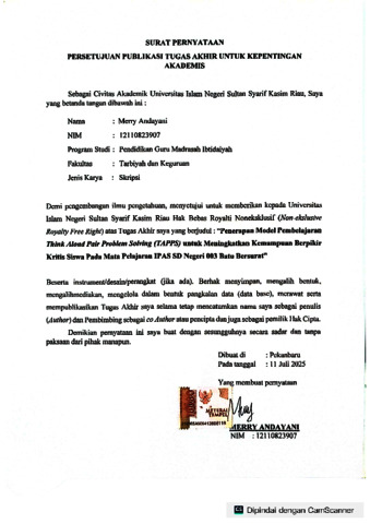 Pernyataan Publikasi Merry Andayani. S, Pd - Merry Andayani.pdf - Published Version Download (386kB) | Preview |
