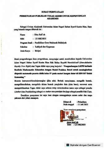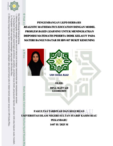 DINA RAFI'AH (2025) PENGEMBANGAN LKPD BERBASIS REALISTIC MATHEMATICS EDUCATION UNTUK MENINGKATKAN DISPOSISI MATEMATIS PESERTA DIDIK PADA MATERI BANGUN DATAR. Skripsi thesis, UNIVERSITAS ISLAM NEGERI SULTAN SYARIF KASIM RIAU.