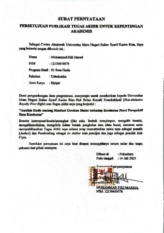 SURAT PERSETUJUAN PUBLIKASI SKRIPSI FIKI - MUHAMMAD FIKI MARSEL Ilmu Hadis S1.pdf - Published Version