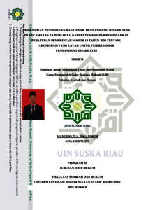 MANGIDO TUA TOGATOROP, - (2025) PEMENUHAN PENDIDIKAN BAGI ANAK PENYANDANG DISABILITAS DI KECAMATAN TAPUNG HULU KABUPATEN KAMPAR BERDASARKAN PERATURAN PEMERINTAH NOMOR 13 TAHUN 2020 TENTANG AKOMODASI YANG LAYAK UNTUK PESERTA DIDIK PENYANDANG DISABILITAS. Skripsi thesis, UNIVERSITAS ISLAM NEGERI SULTAN SYARIF KASIM RIAU.