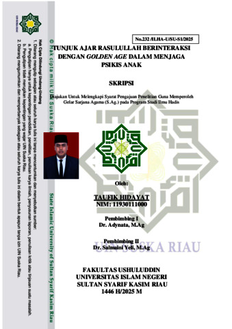 TAUFIK HIDAYAT, - (2025) TUNJUK AJAR RASULULLAH BERINTERAKSI DENGAN GOLDEN AGE DALAM MENJAGA PSIKIS ANAK. Skripsi thesis, Universitas Islam Negeri Sultan Syarif Kasim Riau.