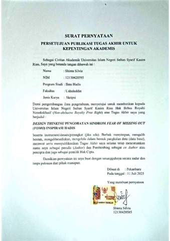 SHINTA SILVIA, - (2025) DESIGN THINKING PENGOBATAN SINDROM FEAR OF MISSING OUT (FOMO) INSPIRASI HADIS. Skripsi thesis, Universitas Islam Negeri Sultan Syarif Kasim Riau.