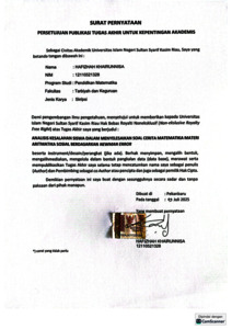 | Divisions: | Fakultas Tarbiyah dan Keguruan > Pendidikan Matematika | ||||||||