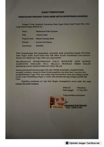MUHAMMAD DEDE KUSMANA, - (2025) PELAKSANAAN PENDISTRIBUSIAN ZAKAT PRODUKTIF OLEH BAZNAS KABUPATEN INDRAGIRI HULU MELALUI PROGRAM UMKM DALAM MENINGKATKAN KESEJAHTERAAN UMAT ISLAM DITINJAU HUKUM ISLAM. Skripsi thesis, UNIVERSITAS ISLAM NEGERI SULTAN SYARIF KASIM RIAU.