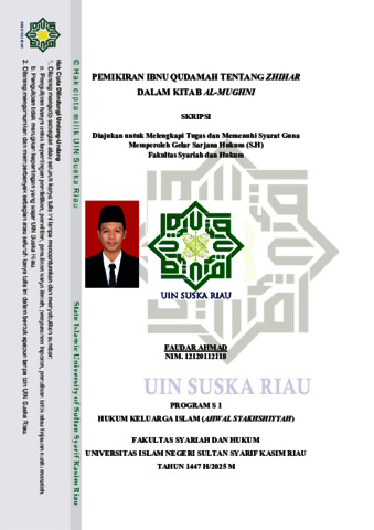 FAUDAR AHMAD, - (2025) PEMIKIRAN IBNU QUDAMAH TENTANG ZHIHAR DALAM KITAB AL-MUGHNI. Skripsi thesis, UIN SUSKA.