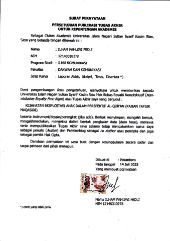 SURAT PERNYATAAN - ILHAM FAHLEVI FEDLI ILMU KOMUNIKASI.pdf - Published Version Download (645kB) | Preview |