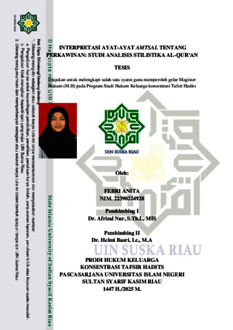 FEBRI ANITA, - (2025) INTERPRETASI AYAT-AYAT AMTSAL TENTANG PERKAWINAN: STUDI ANALISIS STILISTIKA AL-QUR’AN. Thesis thesis, UNIVERSITAS ISLAM NEGERI SULTAN SYARIF KASIM RIAU.