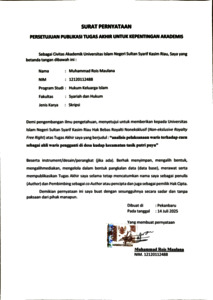 | Divisions: | Fakultas Syariah dan Hukum > Hukum Keluarga (Ahwal Al-Syakhsiyah) | ||||||||||||