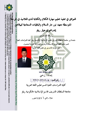 IRHAMNI, - (2025) RINTANGAN-RINTANGAN DALAM PELAKSANAAN PEMBELAJARAN KETERAMPILAN BERBICARA DAN MENULIS BAGI SANTRI TINGKAT TSANAWIYAH PONDOK PESANTREN NUR DARISSLAM DAN AL-BAQIYATUSSA'ADIYYAH TEMBILAHAN INDRAGIRI HILIR RIAU. Thesis thesis, UNIVERSITAS ISLAM NEGERI SULTAN SYARIF KASIM RIAU.