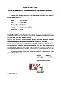 TIARA MONALISA (2025) PENGARUH LIVE STREAMING, ONLINE COSTUMER REVIEW, DAN VIRAL MARKETING TERHADAP KEPUTUSAN PEMBELIAN PADA APLIKASI TIKTOKSHOP PADA GENERASI Z DI KOTA SOLOK. Skripsi thesis, UNIVERSITAS ISLAM NEGERI SULTAN SYARIF KASIM.
