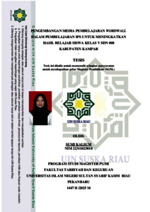 SUMI KALSUM (2025) PENGEMBANGAN MEDIA PEMBELAJARAN WORDWALL DALAM PEMBELAJARAN IPS UNTUK MENINGKATKAN HASIL BELAJAR SISWA KELAS V SDN 008 KABUPATEN KAMPAR. Thesis thesis, UNIVERSITAS ISLAM NEGERI SULTAN SYARIF KASIM.