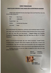 SEKAR FITRIANI, - (2025) PENGARUH EDUKASI GIZI TERHADAP PENINGKATAN PENGETAHUAN MENGENAI LABEL GIZI PADA SISWA DI SMA IT AL FITYAH PEKANBARU. Skripsi thesis, Universitas Islam Negeri Sultan Syarif Kasim Riau.