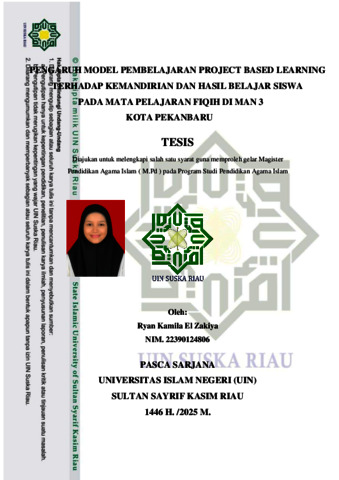 RYAN KAMILA EL ZAKIYA, - (2025) PENGARUH MODEL PEMBELAJARAN PROJECT BASED LEARNING TERHADAP KEMANDIRIAN DAN HASIL BELAJAR SISWA PADA MATA PELAJARAN FIQIH DI MAN 3 KOTA PEKANBARU. Thesis thesis, UNIVERSITAS ISLAM NEGERI SULTAN SYARIF KASIM RIAU.