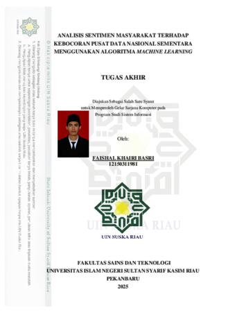 FAISHAL KHAIRI BASRI, - (2025) ANALISIS SENTIMEN MASYARAKAT TERHADAP KEBOCORAN PUSAT DATA NASIONAL SEMENTARA MENGGUNAKAN ALGORITMA MACHINE LEARNING. Building of Informatics, Technology and Science (BITS), 7 (2). ISSN 2685-3310