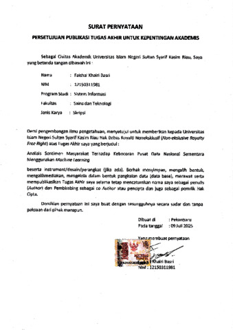 Pernyataan Persetujuan Publikasi - FAISHAL KHAIRI BASRI SISTEM INFORMASI.pdf - Published Version Download (553kB) | Preview |