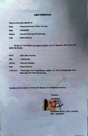 surat pernyataan yaldri - YALDRI OKTRA PRANANDA SISTEM INFORMASI.pdf - Published Version