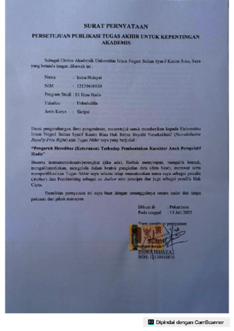 INDRA HIDAYAT, - (2025) PENGARUH HEREDITAS (KETURUNAN) TERHADAP PEMBENTUKAN KARAKTER ANAK PERSPEKTIF HADIS. Skripsi thesis, Universitas Islam Negeri Sultan Syarif Kasim Riau.