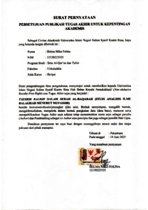 SURAT PERNYATAAN PUBLIKASI - HELMA MIKE FOLINA Ilmu Alquran dan Tafsir S1.pdf - Published Version Download (348kB) | Preview |