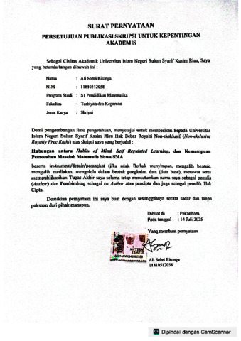 ALI SOBRI RITONGA (2025) HUBUNGAN ANTARA HABITS OF MIND, SELF REGULATED LEARNING, DAN KEMAMPUAN PEMECAHAN MASALAH MATEMATIS SISWA SMA. Skripsi thesis, UNIVERSITAS ISLAM NEGERI SULTAN SYARIF KASIM RIAU.