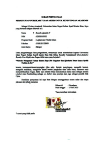 PERNYATAAN PUBLIKASI - RA'UUF AGHANILY. Y Aqidah dan Filsafat Islam.pdf - Published Version Download (336kB) | Preview |