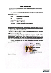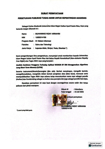 SURAT PERNYATAAN SERAH SIMPAN KARYA SCAN - Muhammad Rizky Arrahim Sistem Informasi.pdf - Published Version
