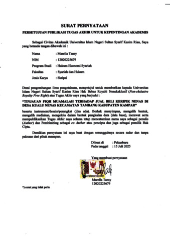 MARELLA TANSY, - (2025) TINJAUAN FIQH MUAMALAH TERHADAP JUAL BELI KERIPIK NENAS DI DESA KUALU NENAS KECAMATAN TAMBANG KABUPATEN KAMPAR. Skripsi thesis, UNIVERSITAS ISLAM NEGERI SULTAN SYARIF KASIM RIAU.