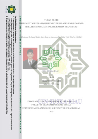 ABSTRAK IMPLEMENTASI STRATEGI IM PARFUM DALAM MENJALIN GOOD RELATIONS DENGAN STAKEHOLDER DI PEKANBARU IM Parfum di Pekanbaru mengimplementasikan strategi menjalin hubungan baik (good relations) dengan berbagai stakeholder eksternal melalui pendekatan kemitraan yang kuat dan komunikasi yang efektif. Pada penelitian ini bertujuan untuk mengertahui bagaimana implementasi strategi IM Parfum dalam menjalin good relations dengan stakeholder di Pekanbaru. Metode analisis data dalam penelitian ini adalah kualitatif. Hasil dari penelitian ini bahwa bagaimana implementasi strategi IM Parfum dalam menjalin good relations dengan stakeholder yakni menerapkan Dengan customer relationship nmanagement ditentukan oleh tiga faktor utama yang terdiri dari: manusia (people) berupa SDM dimana mitra, Reseller dan TIM marketing, untuk proses (process) terdiri dari identifikasi pembeli, pelayanan dan arahan, teknologi (technology) menggunakan Whatsaapp dan media sosial. Relasi yang kuat dengan reseller adalah kunci utama dalam strategi penjualan IM Parfum. Reseller tidak hanya memperluas jangkauan pasar dan meningkatkan penjualan, tetapi juga menjaga kepuasan mitra, membangun loyalitas, serta menjadi saluran utama dalam distribusi dan promosi produk. Kata Kunci: implementasi, Strategi, Customer Relationship Mangement