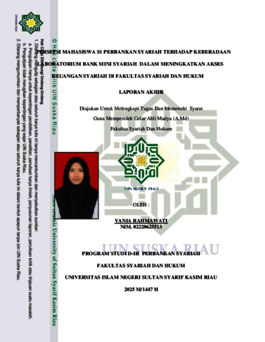 VANIA RAHMAWATI, - (2025) PERSEPSI MAHASISWA S1 PERBANKAN SYARIAH TERHADAP KEBERADAAN LABORATORIUM BANK MINI SYARIAH DALAM MENINGKATKAN AKSES KEUANGAN SYARIAH DI FAKULTAS SYARIAH DAN HUKUM. Skripsi thesis, UNIVERSITAS ISLAM NEGERI SULTAN SYARIF KASIM RIAU.