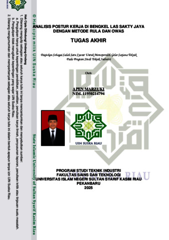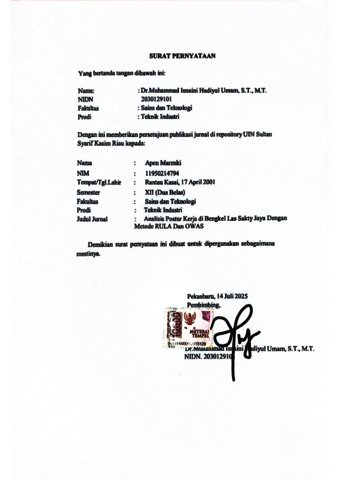 APEN MARZUKI, - (2025) ANALISIS POSTUR KERJA DI BENGKEL LAS SAKTY JAYA DENGAN METODE RULA DAN OWAS. INTECOMS: Journal of Information Technology and Computer Science, 8 (3). ISSN 2621-3249