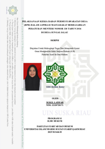 NURUL LATIFAH, - (2025) PELAKSANAAN KERJA BADAN PERMUSYAWARATAN DESA (BPD) DALAM ASPIRASI MASYARAKAT BERDASARKAN PERATURAN MENTERI NOMOR 110 TAHUN 2016 DI DESA SUNGAI JALAU. Skripsi thesis, Universitas Islam Negeri Sultan Syarif Kasim Riau.