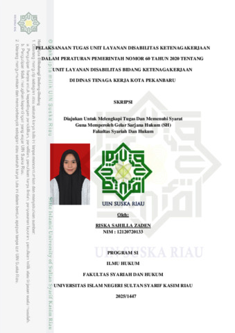RISKA SAHILLA ZADEN, - (2025) PELAKSANAAN TUGAS UNIT LAYANAN DISABILITAS KETENAGAKERJAAN DALAM PERATURAN PEMERINTAH NOMOR 60 TAHUN 2020 TENTANG UNIT LAYANAN DISABILITAS BIDANG KETENAGAKERJAAN DI DINAS TENAGA KERJA KOTA PEKANBARU. Skripsi thesis, Universitas Islam Negeri Sultan Syarif Kasim Riau.