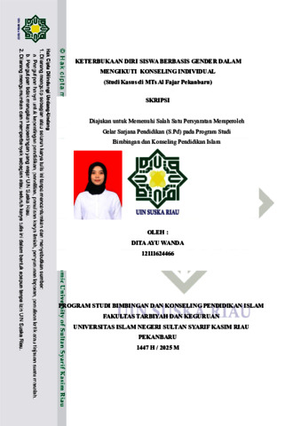 DITA AYU WANDA, - (2025) KETERBUKAAN DIRI SISWA BERBASIS GENDER DALAM MENGIKUTI KONSELING INDIVIDUAL (Studi Kasus di MTs Al Fajar Pekanbaru). Skripsi thesis, UIN SUSKA.