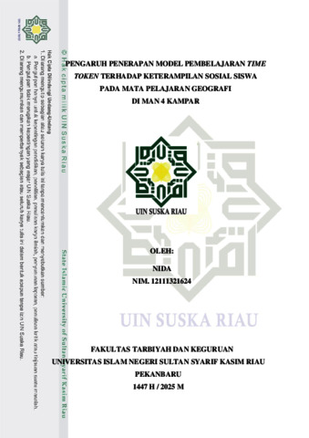 PENGARUH PENERAPAN MODEL PEMBELAJARAN TIME TOKEN TERHADAP KETERAMPILAN SOSIAL PADA MATA PELAJARAN GEOGRAFI DI MAN 4 KAMPAR
