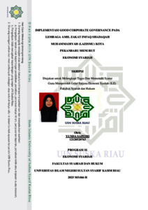 YUNDA SAPITRI, - (2025) IMPLEMENTASI GOOD CORPORATE GOVERNANCE PADA LEMBAGA AMIL ZAKAT INFAQ SHADAQAH MUHAMMADIYAH (LAZISMU) KOTA PEKANBARU MENURUT EKONOMI SYARIAH. Skripsi thesis, Universitas Islam Negeri Sultan Syarif Kasim Riau.