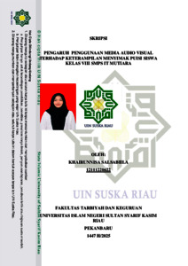 KHAIRUNNISA SALSABIILA (2025) PENGARUH PENGGUNAAN MEDIA AUDIO VISUAL TERHADAP KETERAMPILAN MENYIMAK PUISI SISWA KELAS VIII SMPS IT MUTIARA. Skripsi thesis, UNIVERSITAS ISLAM NEGERI SULTAN SYARIF KASIM RIAU.