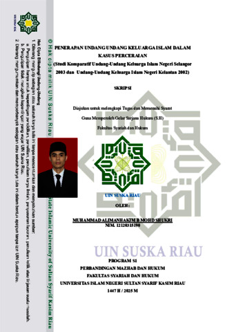 MUHAMMAD ALIMANHAKIM B MOHD SHUKRI, - (2025) PENERAPAN UNDANG UNDANG KELUARGA ISLAM DALAM KASUS PERCERAIAN (Studi Komparatif Undang-Undang Keluarga Islam Negeri Selangor 2003 dan Undang-Undang Keluarga Islam Negeri Kelantan 2002). Skripsi thesis, UNIVERSITAS ISLAM NEGERI SULTAN SYARIF KASIM RIAU.