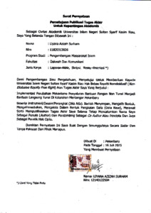 SURAT PERNYATAAN - LIYANA AZIZAH SURHAM PENGEMBANGAN MASYARAKAT ISLAM.pdf - Published Version Download (644kB) | Preview |