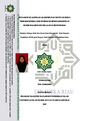 NURHAFIZAH, - (2025) PENGARUH KUALIFIKASI AKADEMIK DAN MOTIVASI KERJA TERHADAP KINERJA GURU DI SEKOLAH MENENGAH KEJURUAN NEGERI SE-KABUPATEN PELALAWAN PROVINSI RIAU. Thesis thesis, UNIVERSITAS ISLAM NEGERI SULTAN SYARIF KASIM RIAU.