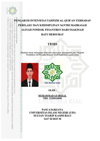 MUHAMMAD GUSRIZAL, - (2025) PENGARUH INTENSITAS TAHFIZH AL-QUR’AN TERHADAP PERILAKU DAN KEDISIPLINAN SANTRI MADRASAH ALIYAH PONDOK PESANTREN DARUSSAKINAH BATU BERSURAT. Thesis thesis, UNIVERSITAS ISLAM NEGERI SULTAN SYARIF KASIM RIAU.