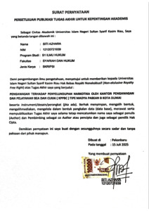 Surat Pernyataan - SITI AZHARA Ilmu Hukum S1.pdf - Published Version
