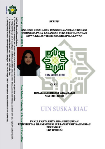 RIMALISA INDRIANI WIKA BAKO, - (2025) ANALISIS KESALAHAN PENGGUNAAN EJAAN BAHASA INDONESIA PADA KARANGAN TEKS CERITA FANTASI SISWA KELAS VII MTs NEGERI 2 PELALAWAN. Skripsi thesis, UNIVERSITAS ISLAM NEGERI SULTAN SYARIF KASIM RIAU.