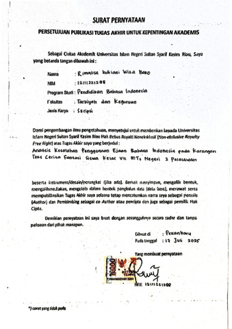 | Divisions: | Fakultas Tarbiyah dan Keguruan > Pendidikan Bahasa Indonesia | ||||||||