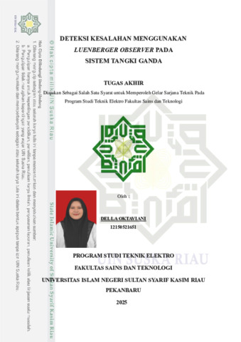 DELLA OKTAVIANI, - (2025) DETEKSI KESALAHAN MENGGUNAKAN LUENBERGER OBSERVER PADA SISTEM TANGKI GANDA. Skripsi thesis, UNIVERSITAS ISLAM NEGERI SULTAN SYARIF KASIM RIAU.