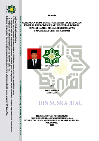 YOGI FIRMAN, - (2025) Hubungan body condition score (BCS) dengan kinerja reporoduksi sapi simental di desa sungai lambu makmur kecamatan tapung kabupaten kampar. Skripsi thesis, UNIVERSITAS ISLAM NEGERI SULTAN SYARIF KASIM RIAU.