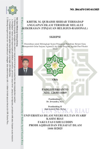 PADLI FEBRIANTO, - (2025) KRITIK M. QURAISH SHIHAB TERHADAP ANGGAPAN ISLAM TERSEBAR MELALUI KEKERASAN (TINJAUAN RELIGIUS-RASIONAL). Skripsi thesis, Universitas Islam Negeri Sultan Syarif Kasim Riau.