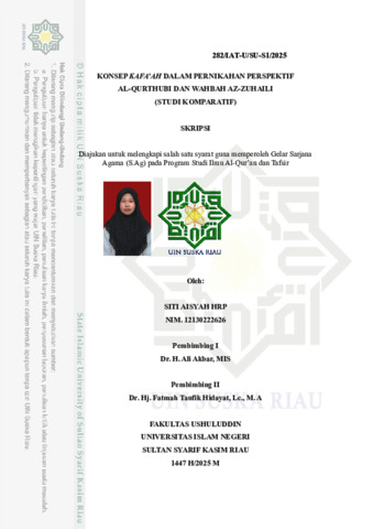 SITI AISYAH HRP, - (2025) KONSEP KAFA’AH DALAM PERNIKAHAN PERSPEKTIF AL-QURTHUBI DAN WAHBAH AZ-ZUHAILI (STUDI KOMPARATIF). Skripsi thesis, Universitas Islam Negeri Sultan Syarif Kasim Riau.