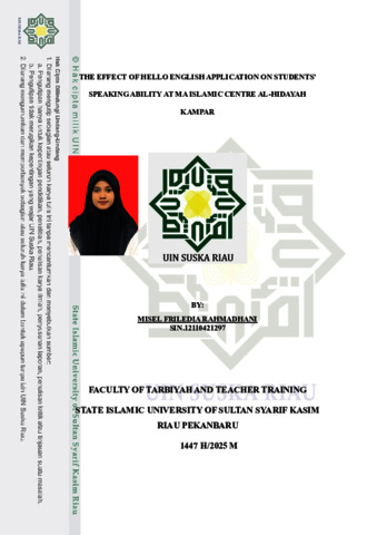 THE EFFECT OF HELLO ENGLISH APPLICATION ON STUDENTS’ SPEAKING ABILITY AT MA ISLAMIC CENTRE AL-HIDAYAH KAMPAR