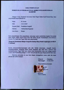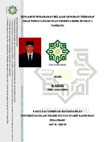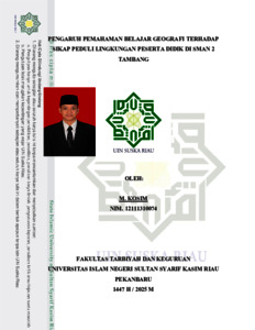 M. KOSIM (2025) PENDIDIKAN GEOGRAFI JUDUL : PENGARUH PEMAHAMAN BELAJAR GEOGRAFI TERHADAP SIKAP PEDULI LINGKUNGAN PESERTA DIDIK DI SMAN 2 TAMBANG. Skripsi thesis, UNIVERSITAS ISLAM NEGERI SULTAN SYARIF KASIM RIAU.