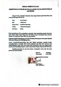 | Divisions: | Fakultas Tarbiyah dan Keguruan > Pendidikan Matematika | ||||||||
