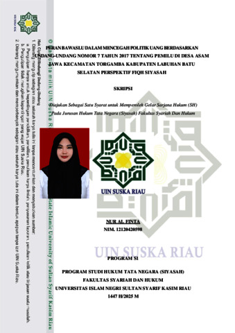 NUR ALFINTA, - (2025) PERAN BAWASLU DALAM MENCEGAH POLITIK UANG BERDASARKAN UNDANG-UNDANG NOMOR 7 TAHUN 2017 TENTANG PEMILU DI DESA ASAM JAWA KECAMATAN TORGAMBA KABUPATEN LABUHAN BATU SELATAN PERSPEKTIF FIQH SIYASAH. Skripsi thesis, UNIVERSITAS ISLAM NEGERI SULTAN SYARIF KASIM RIAU.